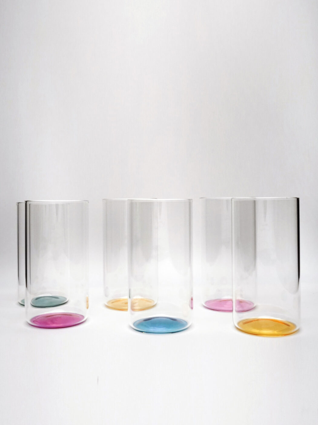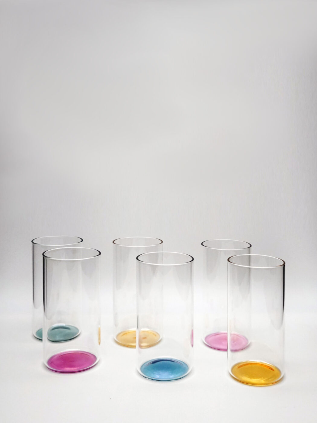 Set of 6 high tumblers in handmade glass.