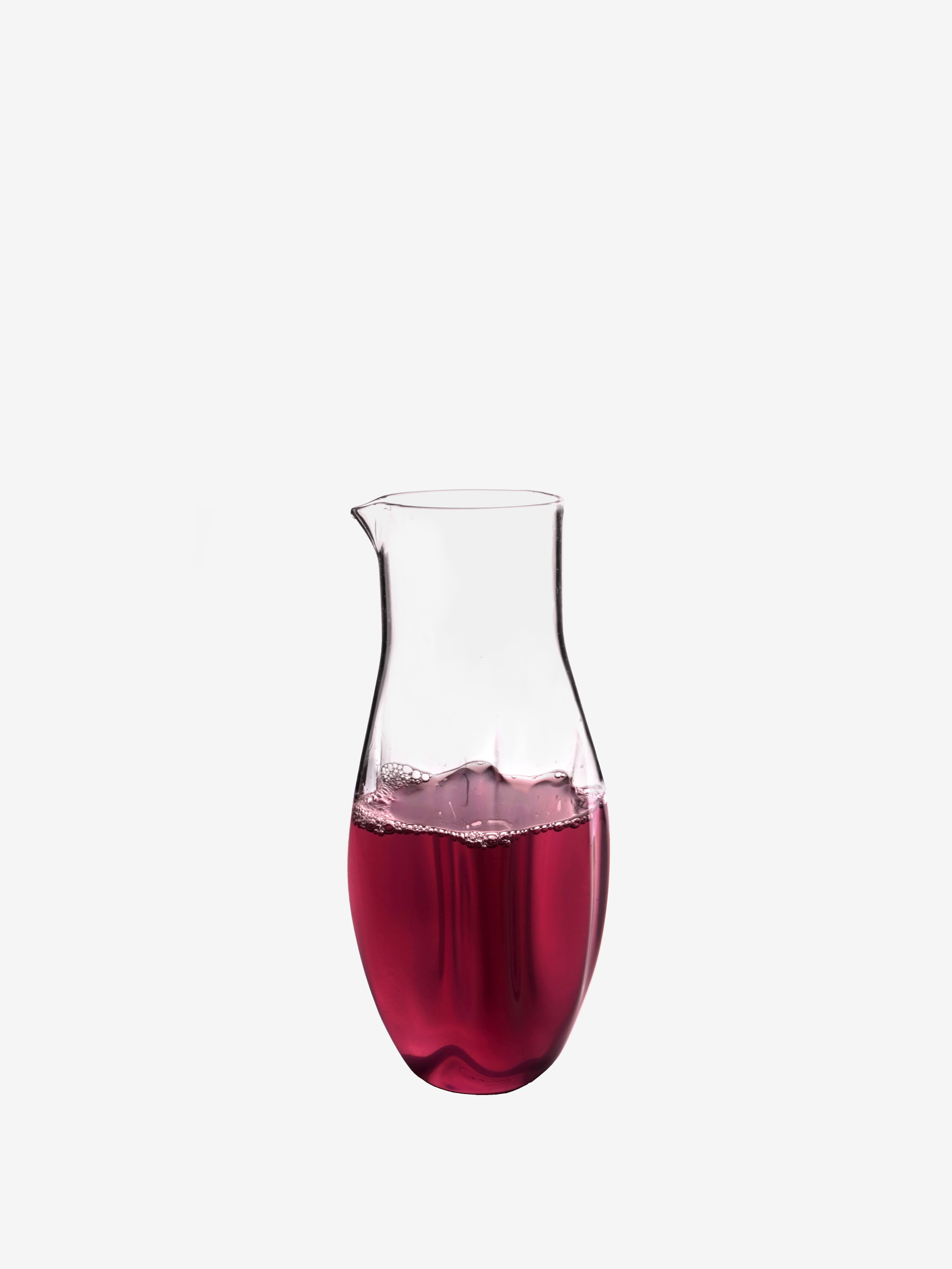 Caraffa in vetro lavorata a mano.