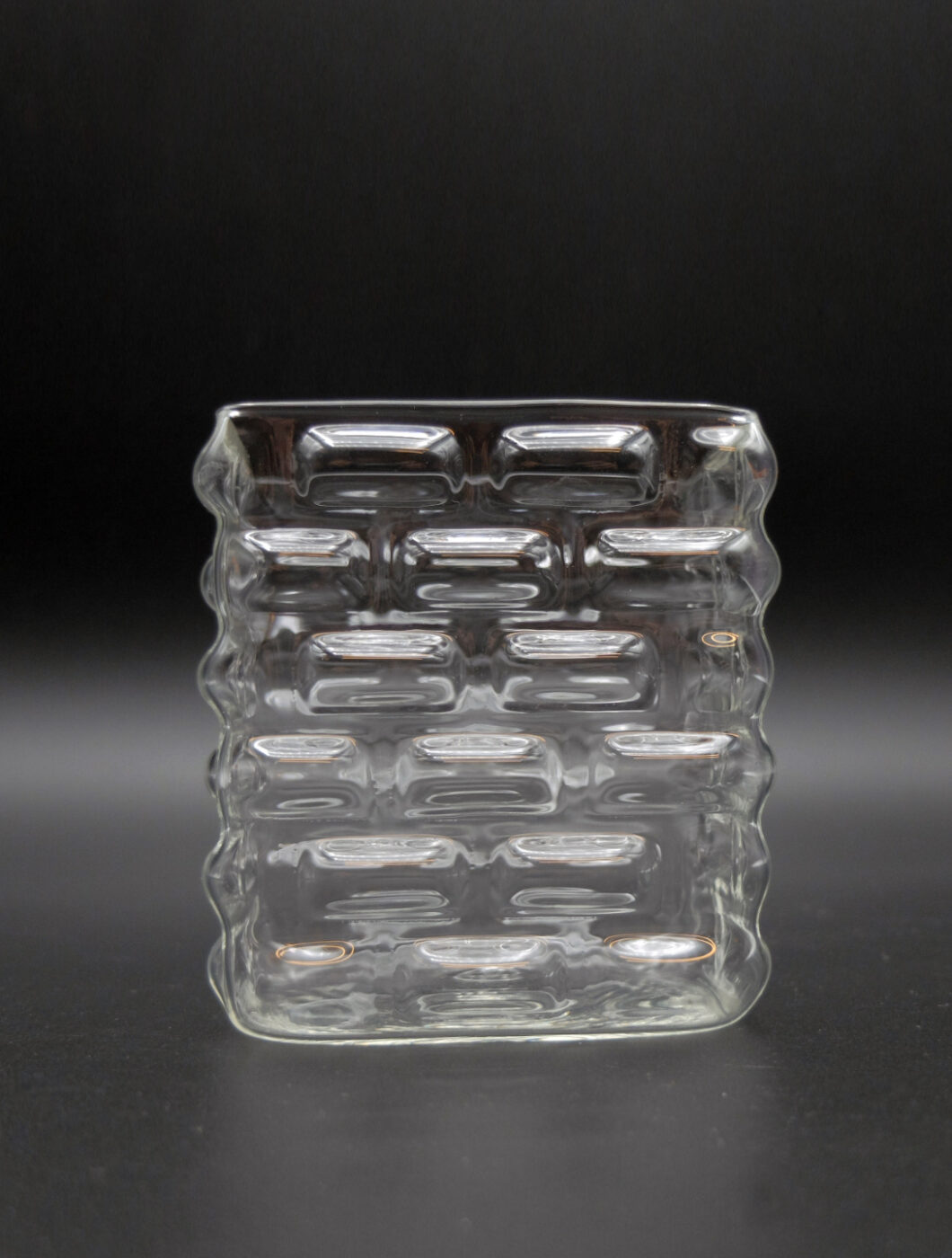 Un contenitore in vetro borosilicato soffiato in gabbia la cui forma evocativa richiama le facciate dei palazzi rinascimentali italiani.