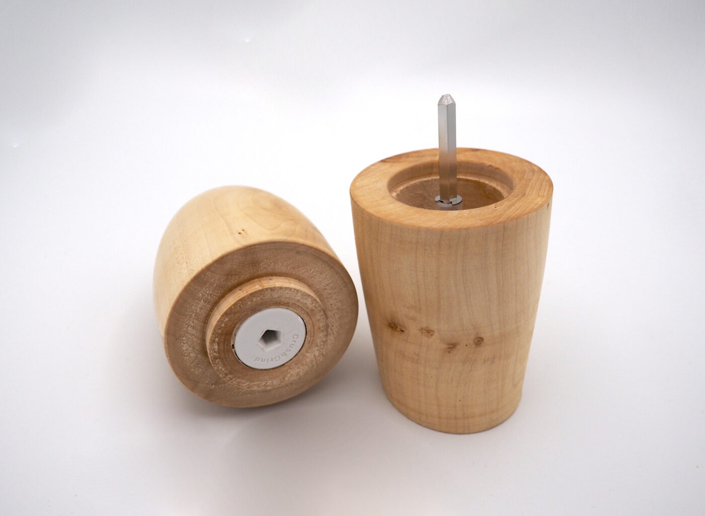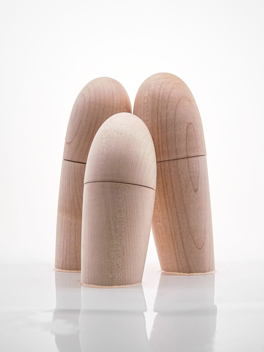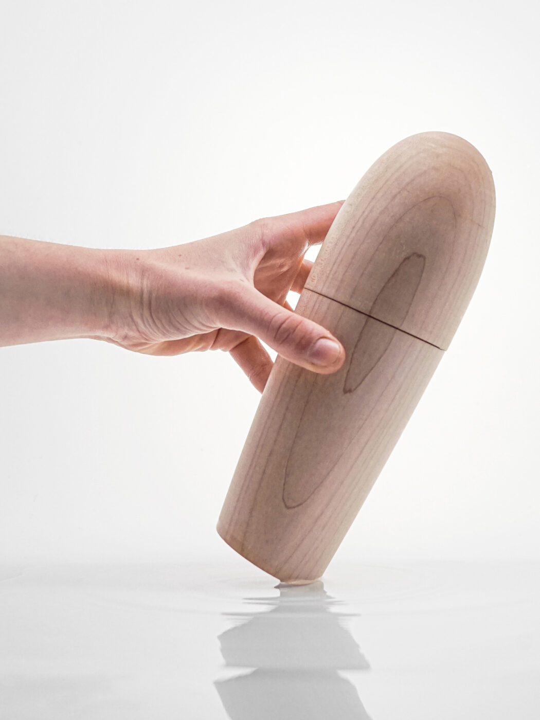 The bricole are wooden poles that are met while sailing in the lagoon, they mark the canals, the safe routes. They are elements that emerge from the water, silent, abstract and we were looking for the same effect. The Bricola pepper and salt mills emerge from the table as natural, present elements. The minimal shape and dimensions derive from the observation of the hands in the gesture of grinding, while the inclination alienates them from the context of the table, becoming a reason for conversation.