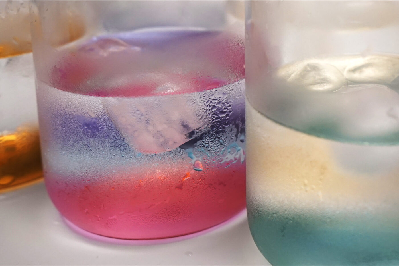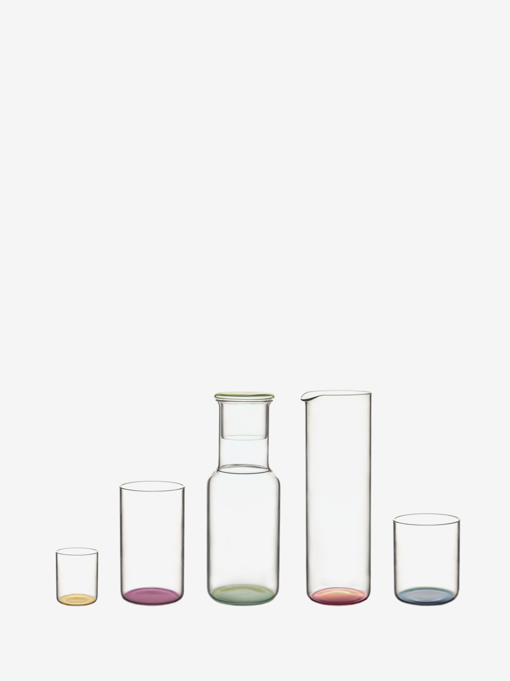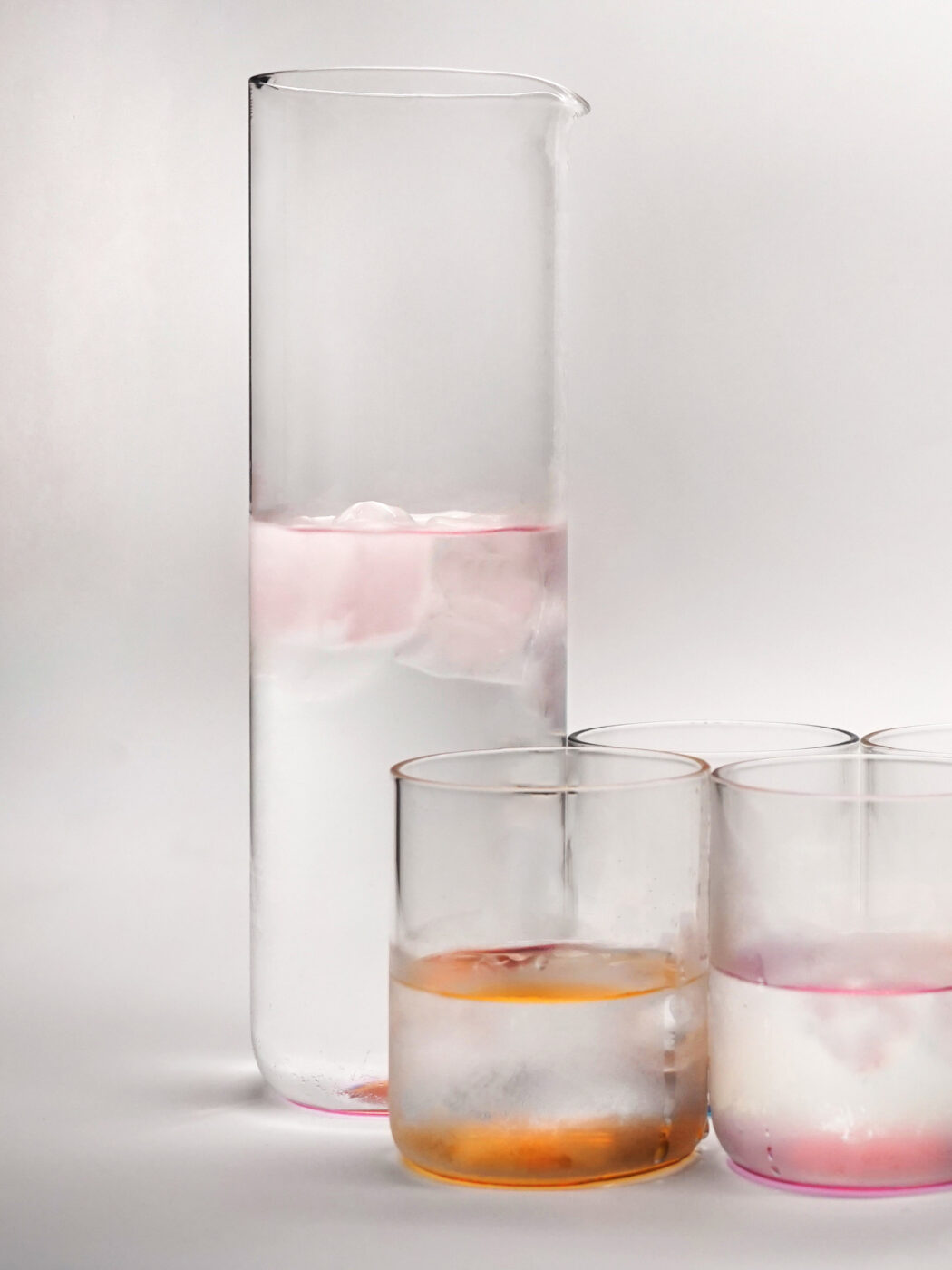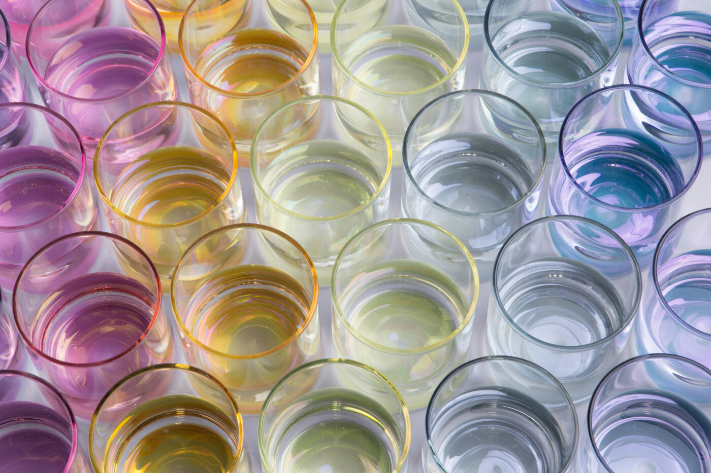 Gli elementi della collezione “Iride” sfruttano il fenomeno della rifrazione luminosa e giocano con il colore del fondo trasportandolo in superficie. Iride è fatto per l’acqua, liquido perfetto per l’esperimento, l’acqua perde la sua essenza trasparente ed assume le 6 colorazioni desiderate, trasformando la tavola in una tavolozza.