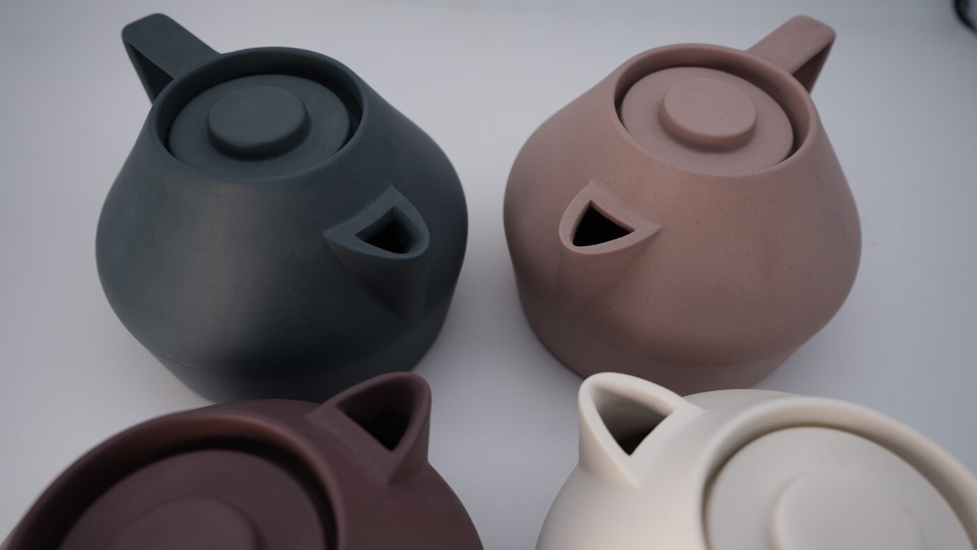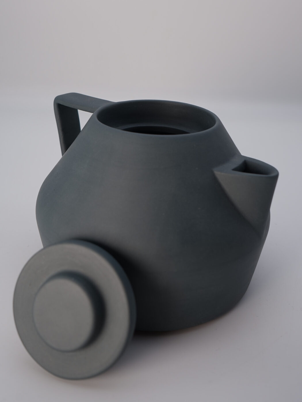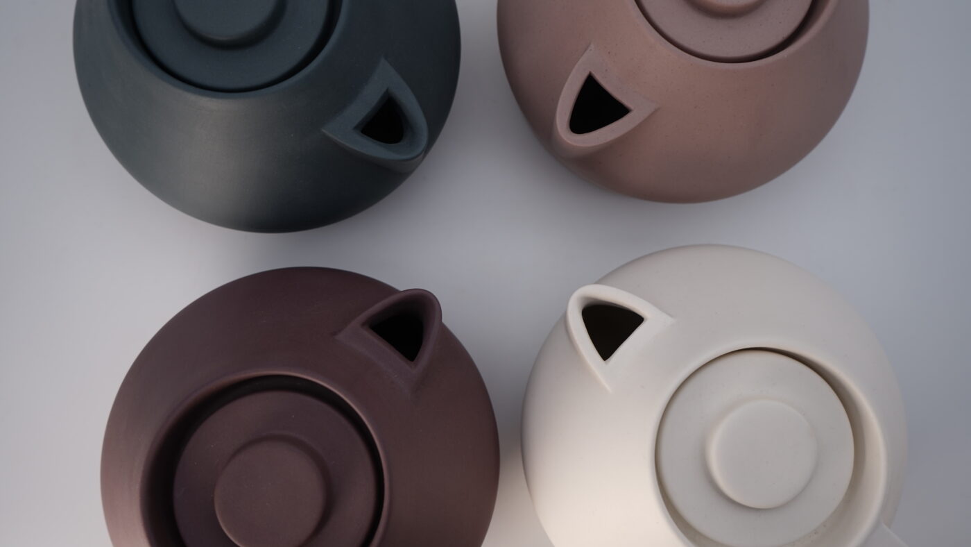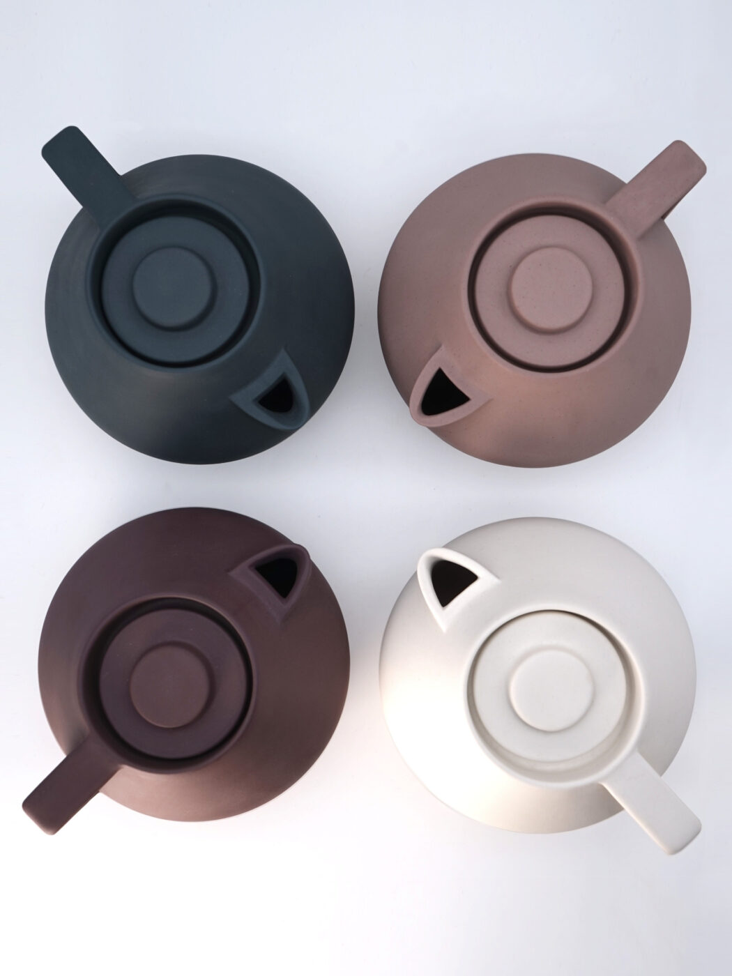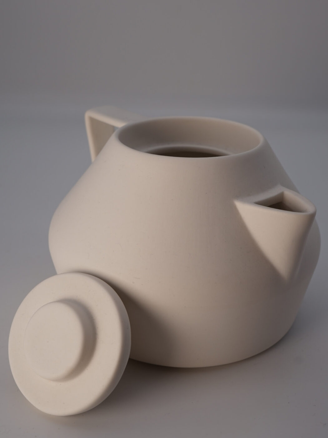 Teiera in porcellana dalle linee geometriche pulite e morbide, serica al tatto e piacevole all’uso.