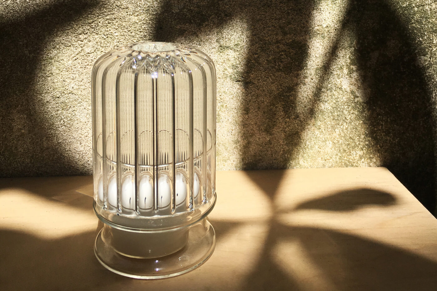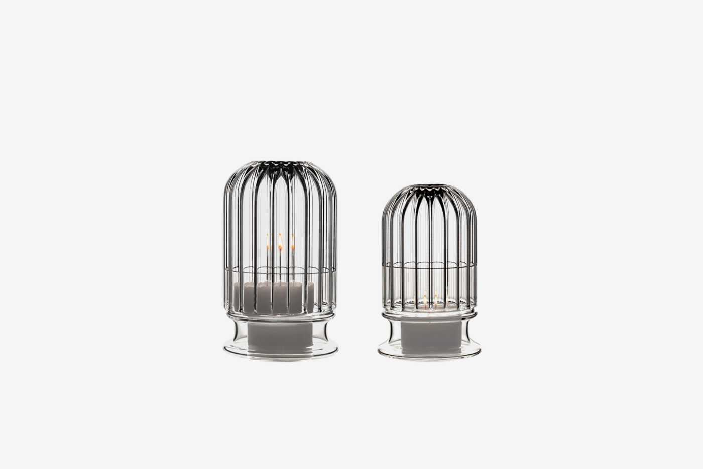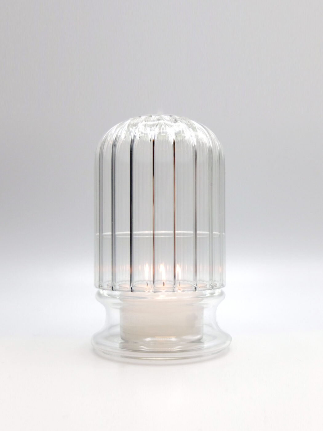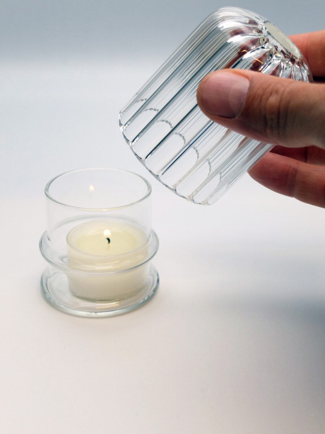 Portacandele in vetro borosilicato lavorato a mano, pensato anche per l’outdoor.
