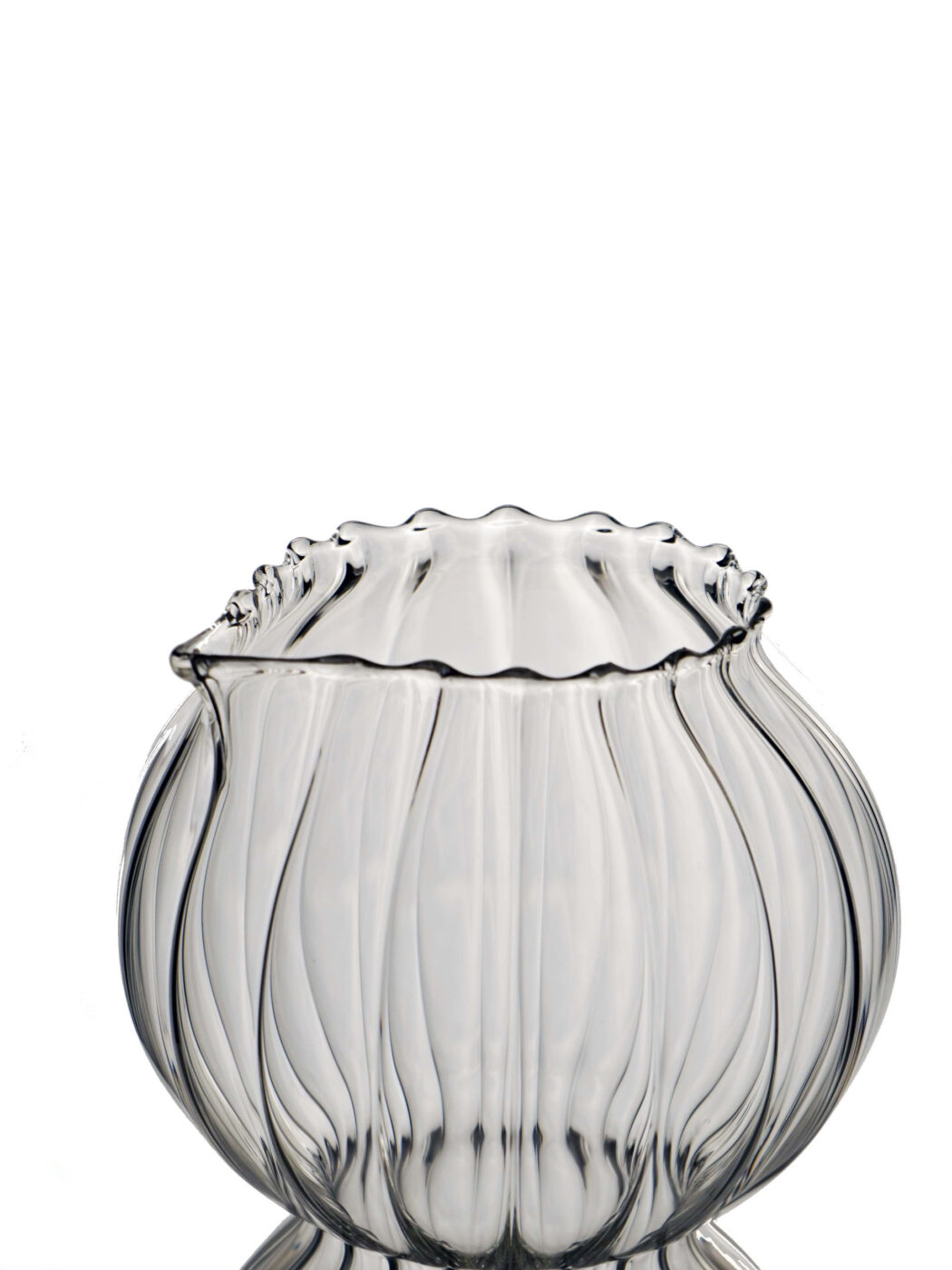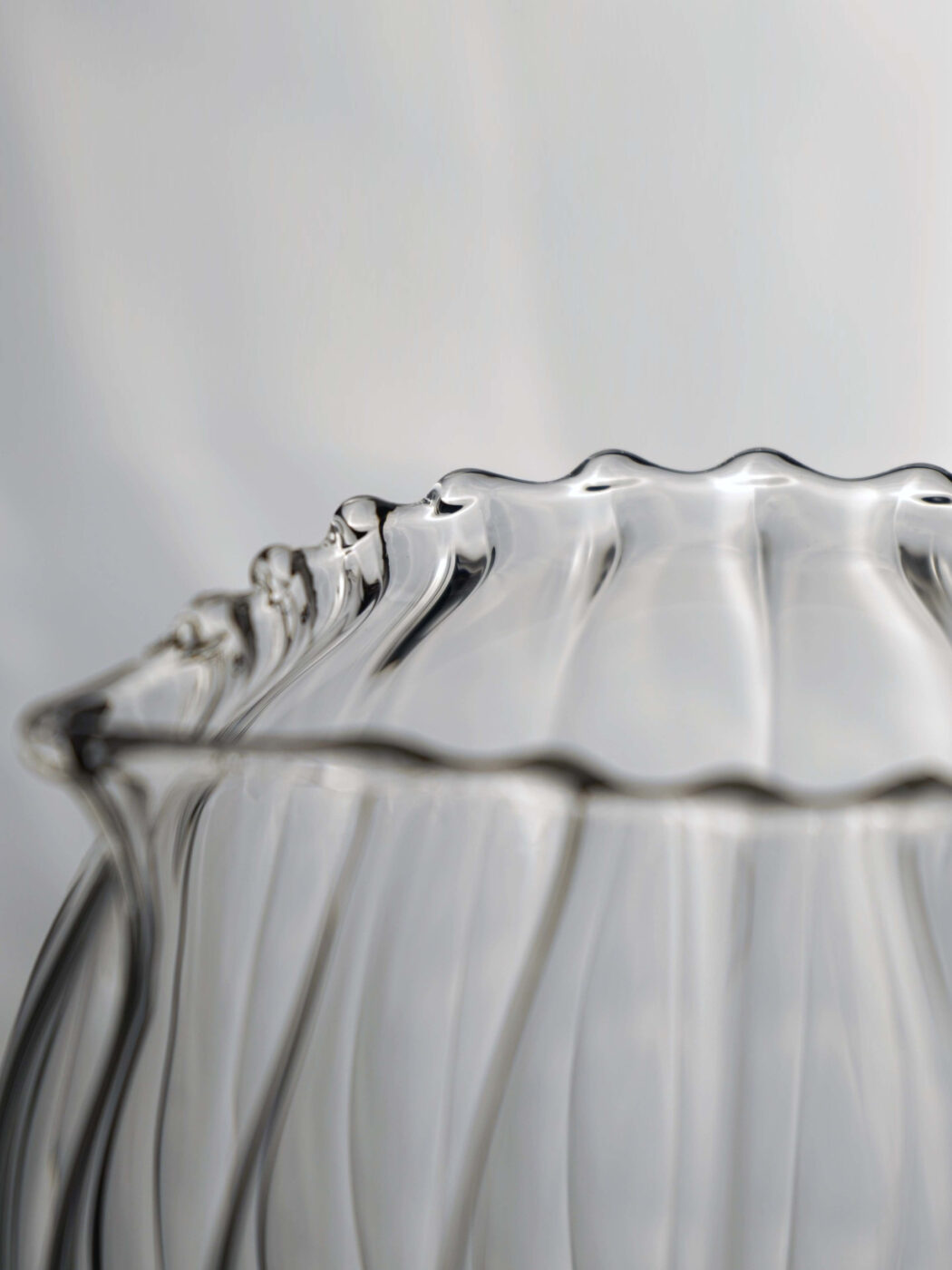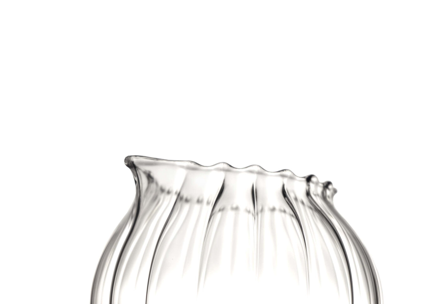 Realizzata in vetro borosilicato, ogni caraffa è realizzata a mano, senza l’uso di stampi, da artigiani veneziani.