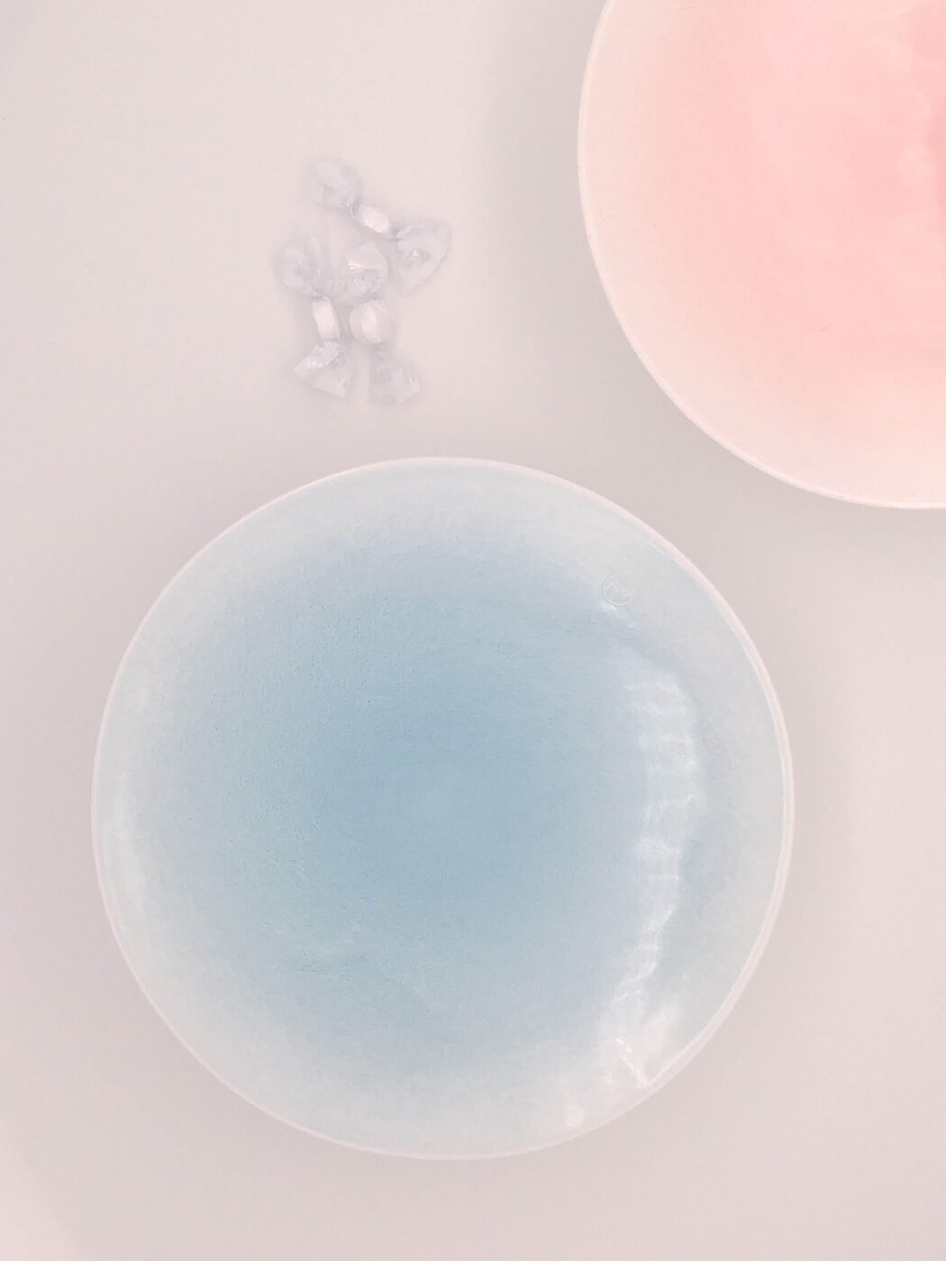 The plate is by nature a two-dimensional object. Planet dishes go beyond the imagination and are enriched by the third dimension creating the illusion of containing. Monoliths that enhance, elevating, the content. New version of the Planet plates, characterized by the blue or pink gradient color of the upper surface.
