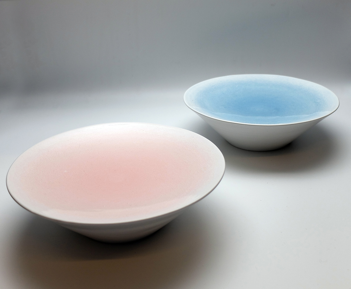 Il piatto è per sua natura un oggetto bidimensionale. I piatti Planet vanno oltre l’immaginario e si arricchiscono della terza dimensione creando l’illusione di contenere. Dei monoliti che esaltano, elevandolo, il contenuto. Nuova versione dei piatti Planet Ø 20 cm, caratterizzata dal colore sfumato blu o rosa della superficie contenitiva superiore.