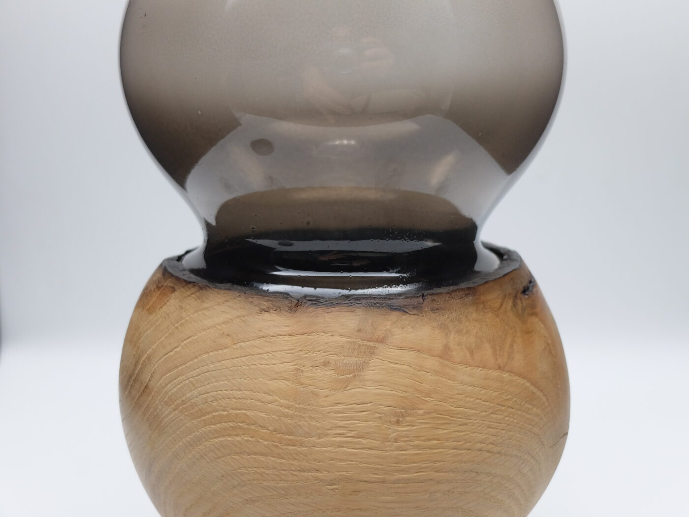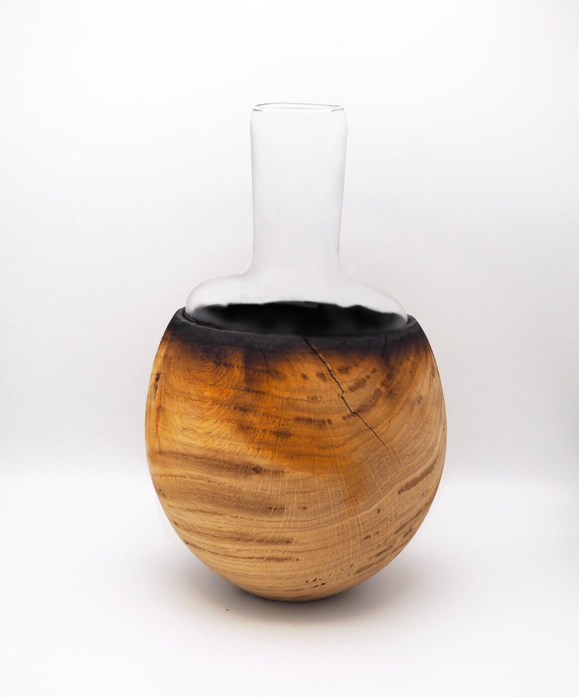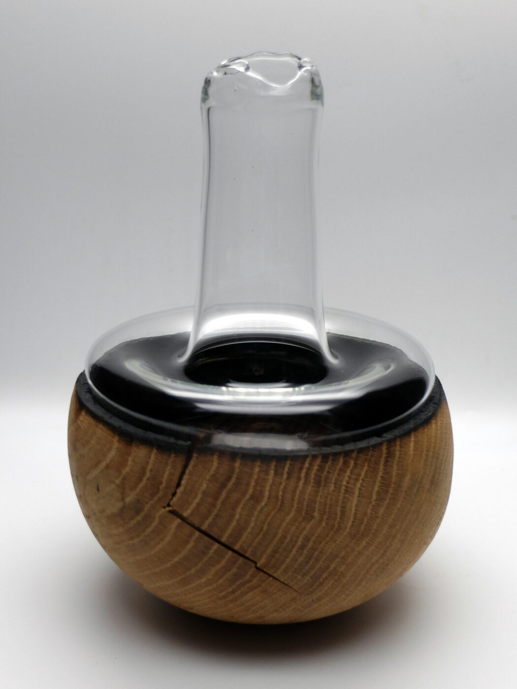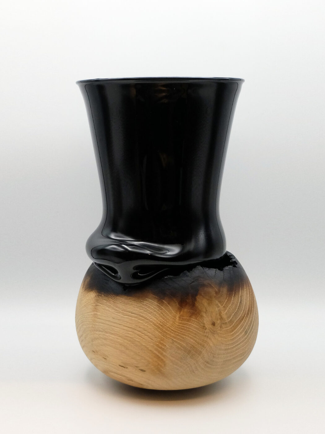 I vasi primitivi sono realizzati in vetro borosilicato soffiato ad una temperatura di 1200°C in contenitori di noce torniti a mano.