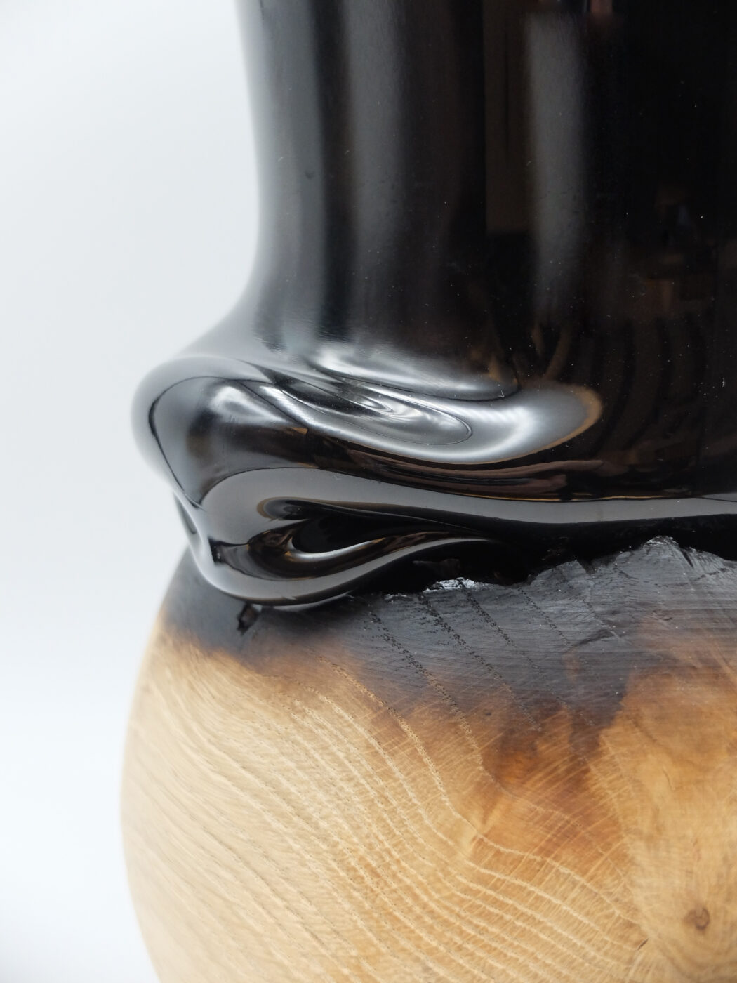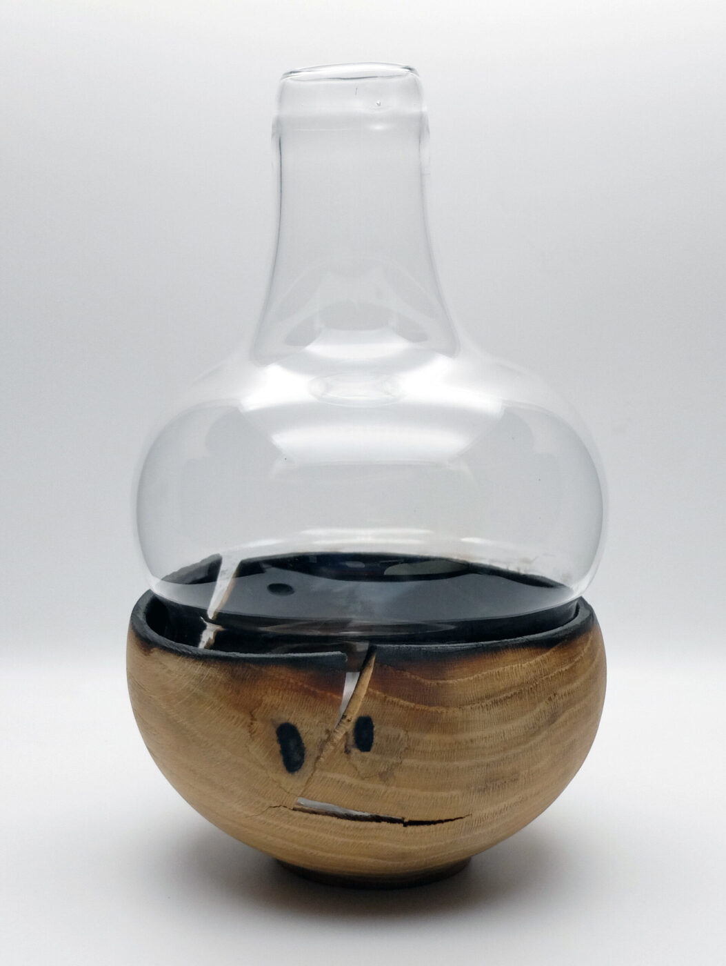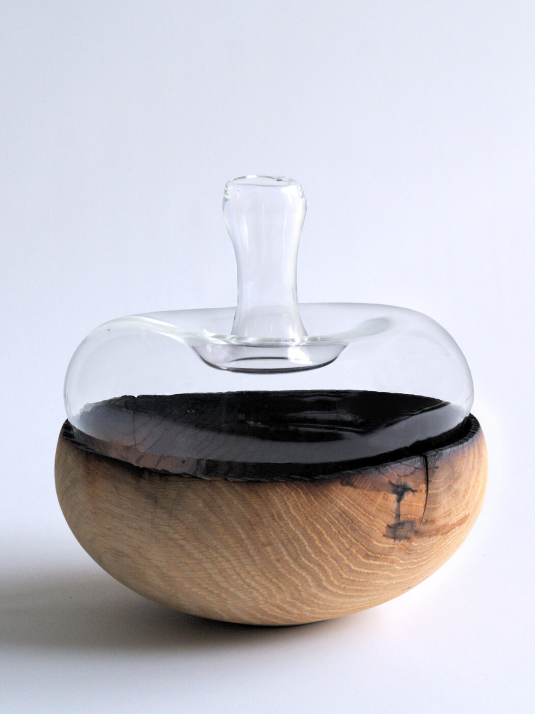 Primitivi è un progetto che parla di un vetro di confine, diverso dalle immagini evocative che questo materiale ci propone nell’immediato e che invece esplora forme e legami che forse serbiamo in uno strato più remoto del nostro subconscio, risvegliandole. La collezione Primitivi rappresenta la sintesi di questa esplorazione, la rappresentazione di nuove opportunità possibili tra materiali così diversi per sostanza e per apparenza. Da sempre il legno è il materiale con la quale vengono realizzati gli stampi in cui soffiare il vetro plasmandolo, Primitivi scardina il concetto di stampo donandogli dignità propria e portandolo ad essere parte inseparabile dell’oggetto finale.